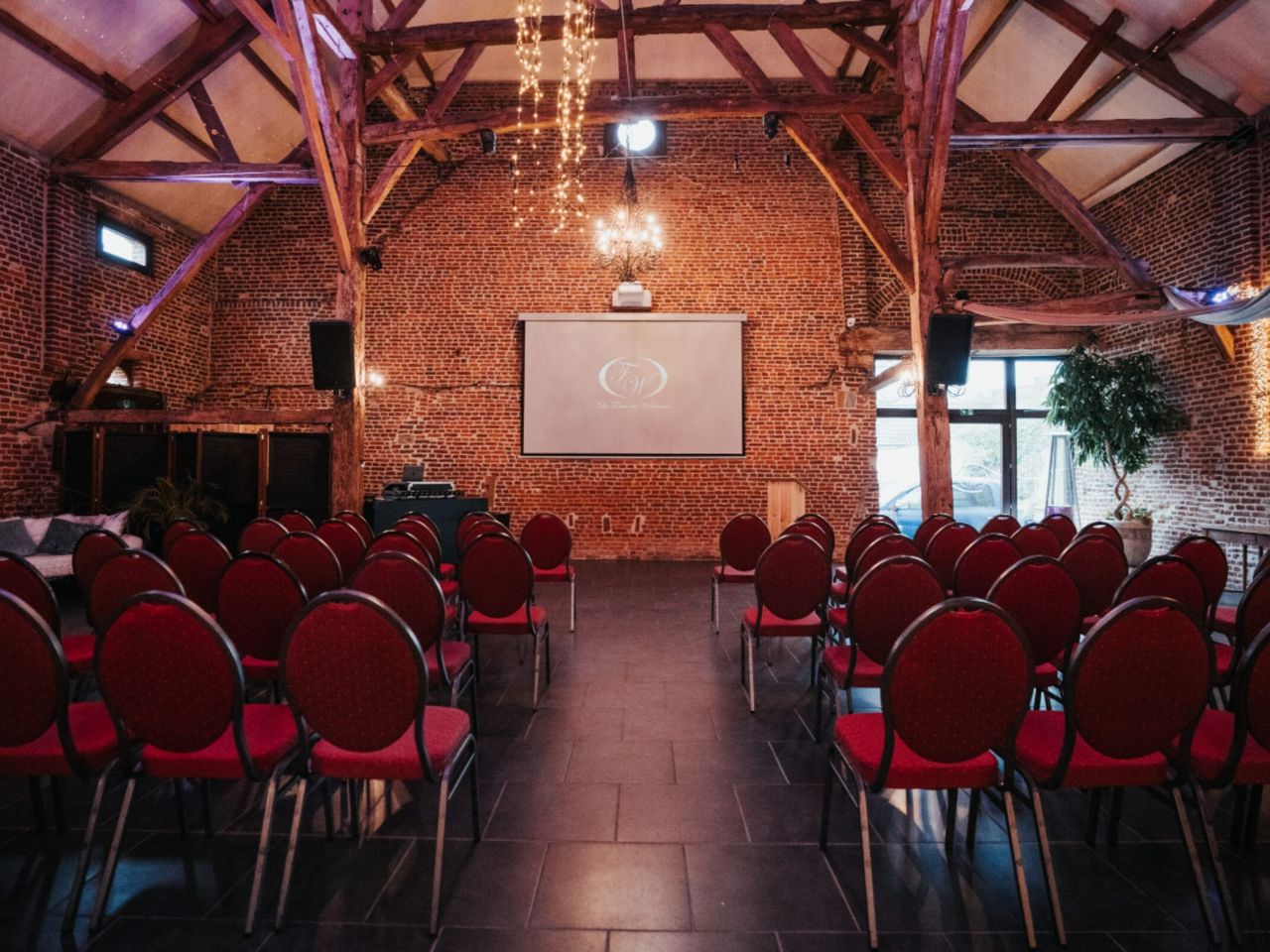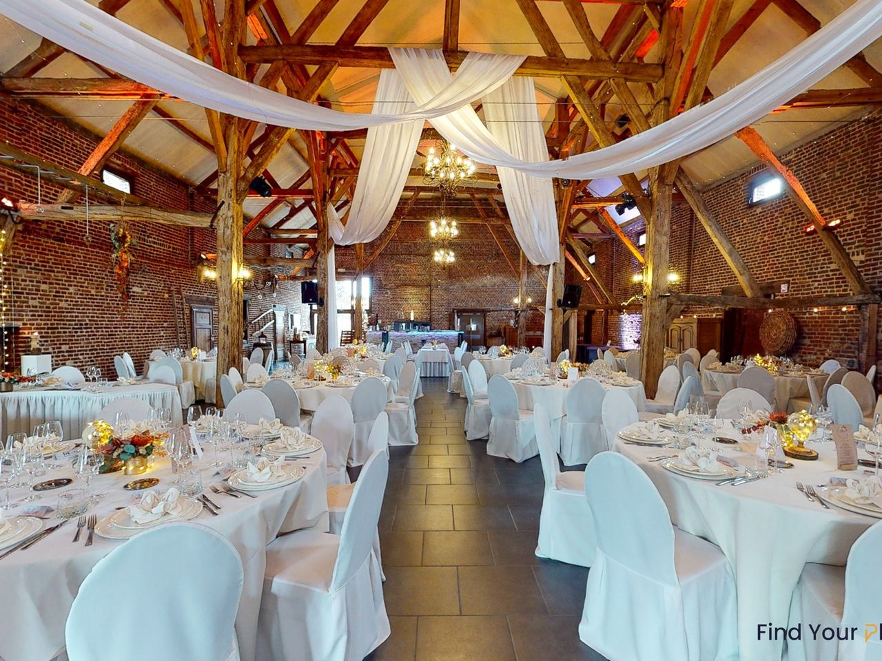 Ce domaine dévoile une vaste grange du XVIIIᵉ siècle, entièrement rénovée et se distinguant par sa magnifique charpente apparente, qui apporte chaleur et caractère à chaque événement organisé dans ce lieu d’exception.