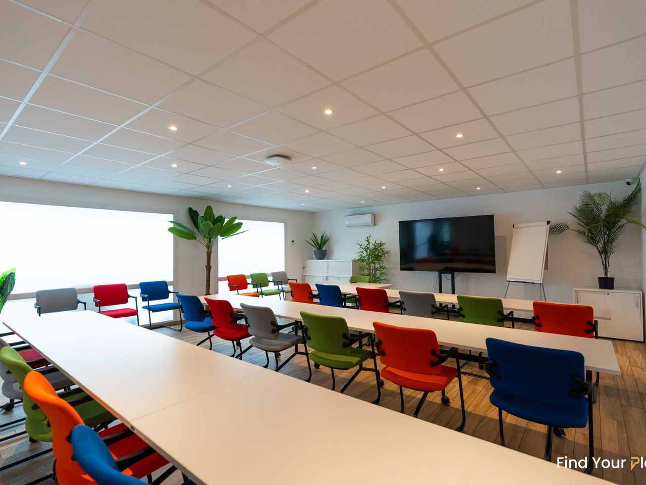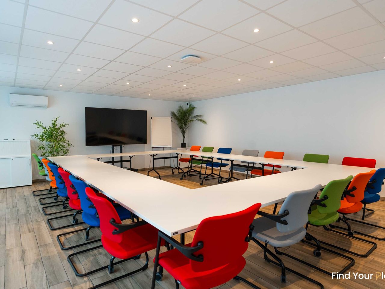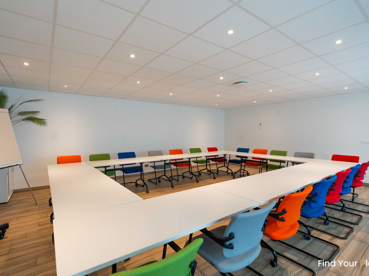 Cette salle de réunion moderne et inspirante convient pour tout type de congrès, séminaire ou journée de formation jusqu’à 24 participants. Sa grande modularité permet un agencement en réunion, en U, en classe ou en théâtre selon vos besoins. Pour animer vos séances de travail, vous disposez sur place d’un flipchart, d’un système de projection et de la wifi, ainsi que du matériel son et lumière. Les charges énergétiques et le ménage sont inclus dans le prix et la salle peut être louée à la demi-journée ou à la journée complète pour un prix abordable.