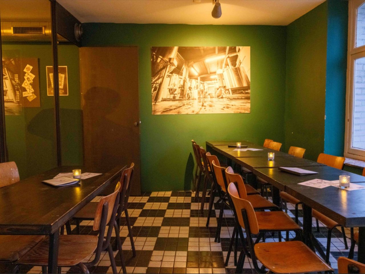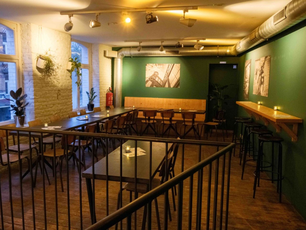 À seulement 30 minutes à pied du centre historique de Bruxelles, ce lieu convivial et chaleureux se prête également à vos événements privés ou professionnels. Plusieurs configurations sont possibles : privatisez le bar dans son intégralité, uniquement le rez-de-chaussée ou encore la salle à l’étage. Cette dernière peut accueillir jusqu'à 50 personnes pour un apéritif ou un walking dinner, ou 30 personnes en configuration théâtre pour une réunion. Une privatisation complète permet d'accueillir jusqu’à 100 personnes debout ou 80 assises.